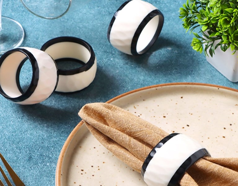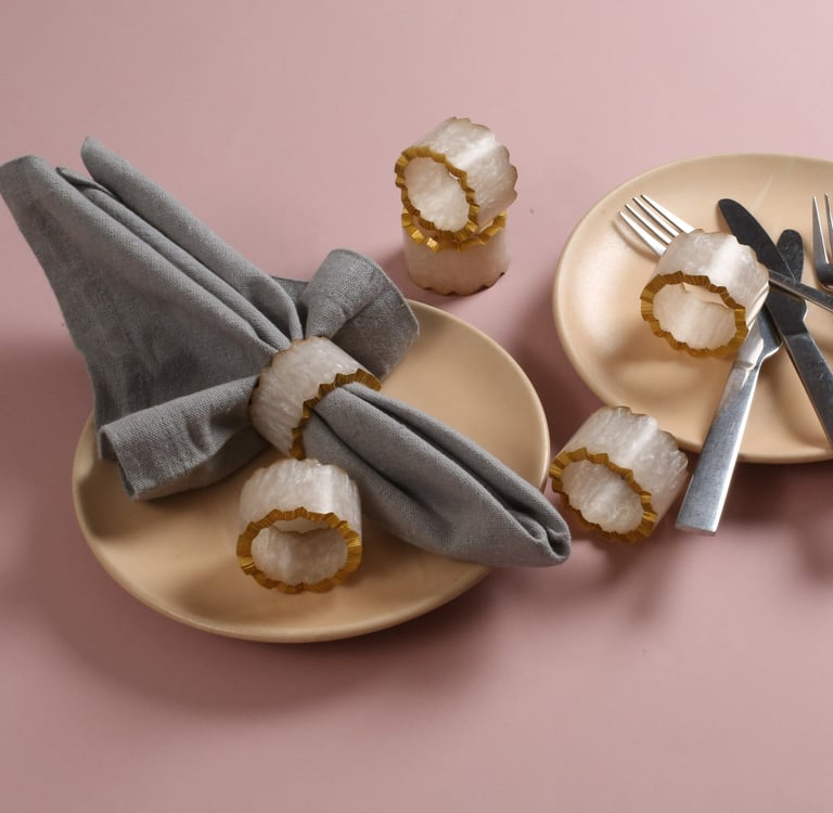 These elegant handcrafted napkin rings add a touch of sophistication to any table setting. Made with meticulous attention to detail, each ring showcases the beauty of artisanal craftsmanship and is perfect for both everyday use and special occasions.